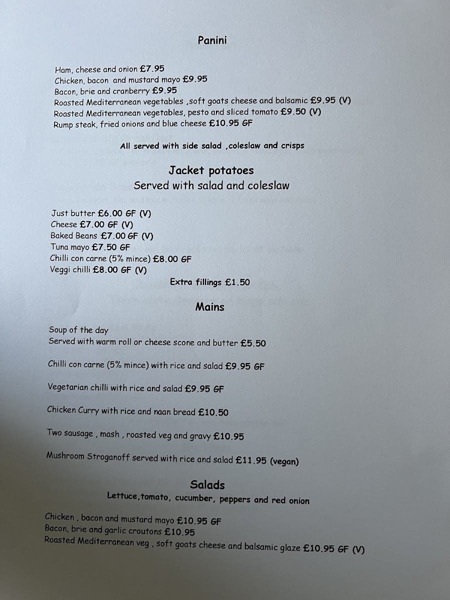 Located at 2 Dale Rd, Matlock, Lumsdale Tearooms offers a menu primarily suited for breakfast, light meals, and casual dining. The food options include a variety of salads such as Chicken, Bacon and Mustard Mayo, Bacon, Brie and Garlic Croutons, and Roasted Mediterranean Vegetables with Soft Goats Cheese and Balsamic Glaze, each priced at £10.95.