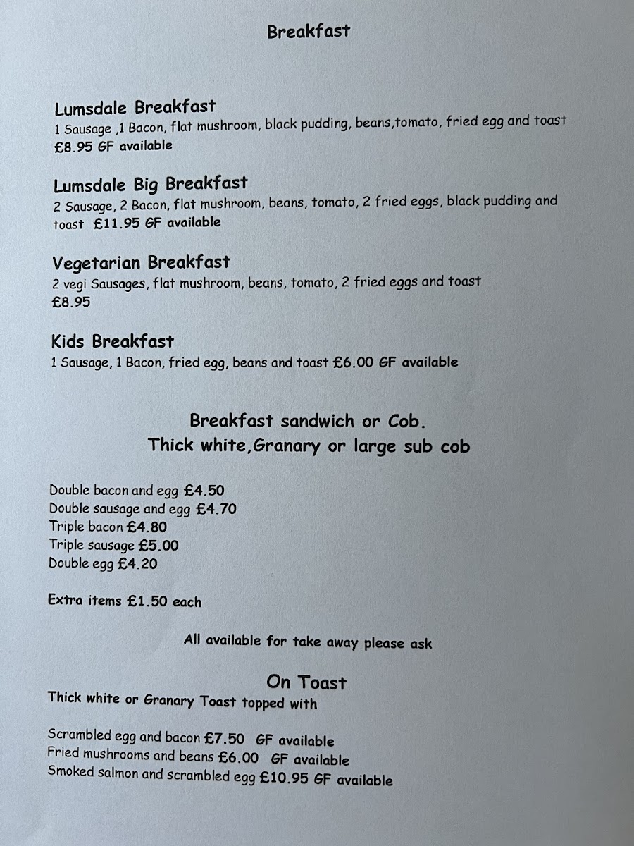 Lumsdale Tearooms Menu